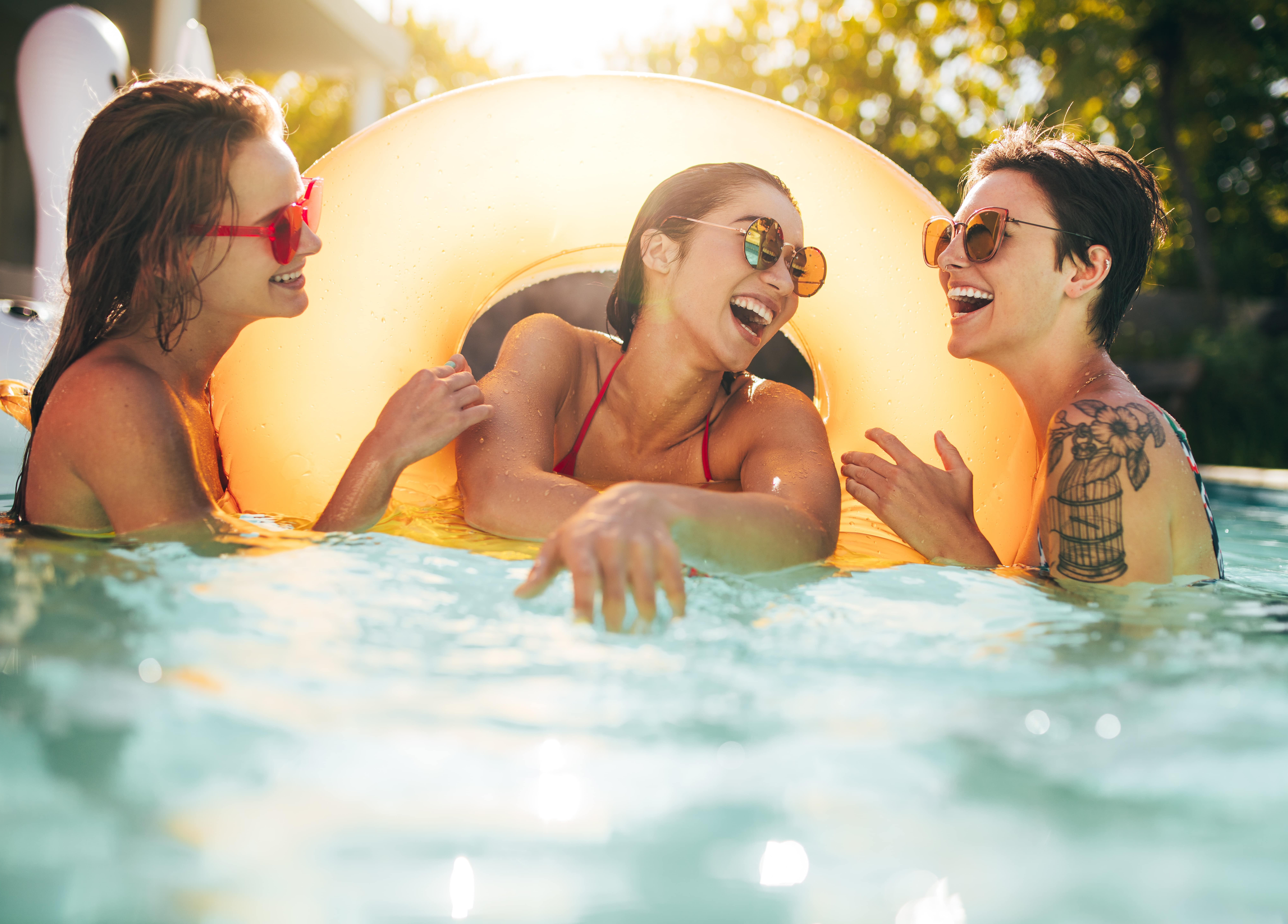 Resort Style Pool Including Volleyball, Water Basketball, and Tanning Decks